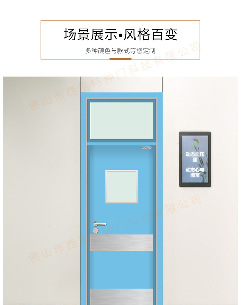 產品簡介:chnsige西格特種門,專業生產醫院門,醫院診室門,醫院辦公室門,醫院衛生間門,木質醫院門,鋼質醫院門,多鐘款式、顏色,尺寸可定制。