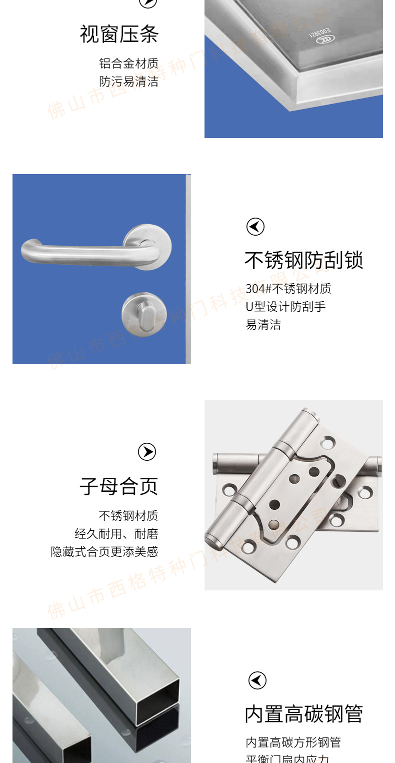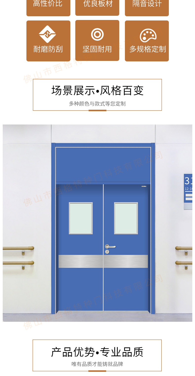 產品簡介:chnsige西格特種門,專業生產醫院門,醫院診室門,醫院辦公室門,醫院衛生間門,木質醫院門,鋼質醫院門,多鐘款式、顏色,尺寸可定制。