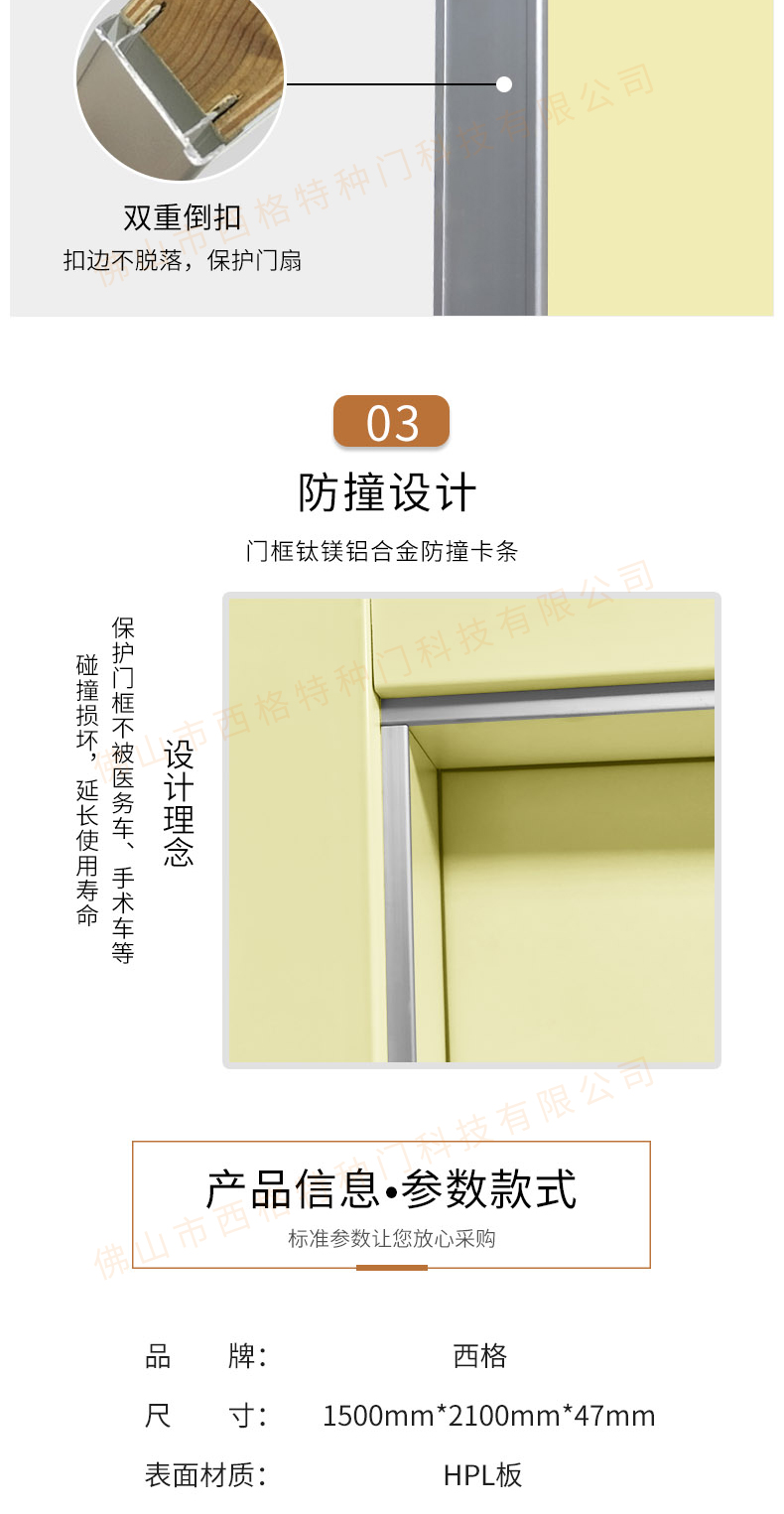 產品簡介:chnsige西格特種門,專業生產醫院門,醫院診室門,醫院辦公室門,醫院衛生間門,木質醫院門,鋼質醫院門,多鐘款式、顏色,尺寸可定制。