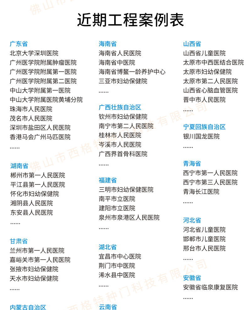 產品簡介:chnsige西格特種門,專業生產醫院門,醫院診室門,醫院辦公室門,醫院衛生間門,木質醫院門,鋼質醫院門,多鐘款式、顏色,尺寸可定制。